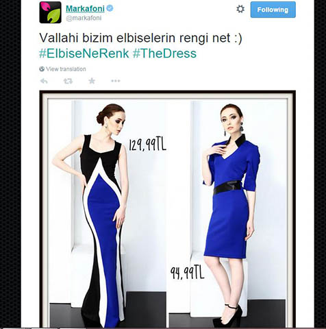 Markaların paylaştıkları yaratıcı bu Tweet’ler binlerce yeni takipçi de sağlıyor. Türkiye’deki pek çok firmanın kaçırmadığı bu elbise tartışmasına dair paylaşılan yaratıcı pazarlama Tweet’lerinden birkaçını sizler için derledik.