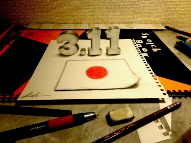 Japon sanatçı  aslında çizimleri 2 boyutlu olarak çiziyor. Kullanmış olduğu teknik ile çizimler 3 boyutlu hale geliyor.