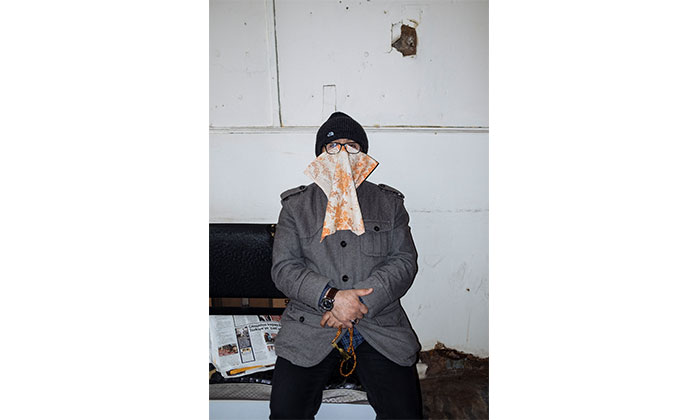 Emin Özmen: Eve yürürken, her zaman her koşulda o terkedilmiş binanın giriş katında oturmakta olan bir grup adamın yine aynı yerde sohbet ettiklerini görüyorum pencereden. Maske yerine kullandığı o bez parçası, elindeki tesbihi ile tam ortada oturan adam aniden dikkatimi çekiyor; kısa bir tereddüdün ardından, girip bir portresini çekiyorum.