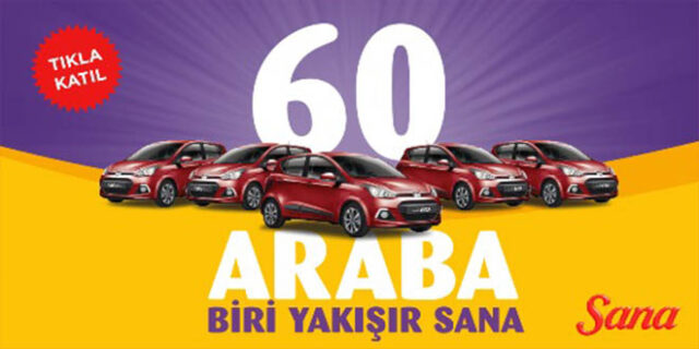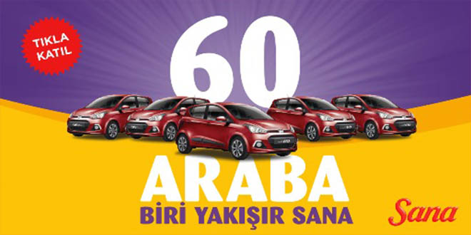 Türk mutfağının vazgeçilmez lezzeti ve geleneksel markaları arasında yer alan Sana, 2015’e “tam gaz” girdi! 23 Nisan’a dek Sana alan 60 şanslı, çekilişle tam 60 adet Hyundai i10’dan birinin sahibi oluyor!