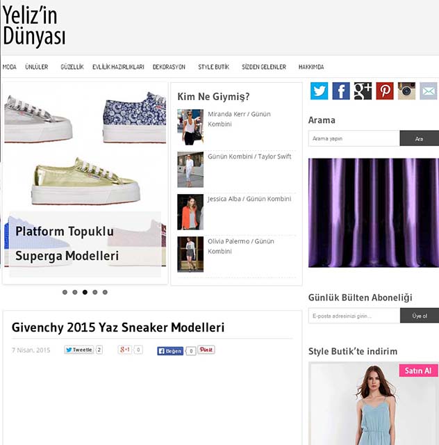Bu blogların büyük kısmı moda ve alışveriş üzerine. Kimi blog sahipleri moda dünyasındaki son trendlerden haberler verirken kimileri de sitelerinde ünlü markaların ürünlerini uygun fiyatlara satışını yapıyor. Bizde sizler için hem bu popüler siteleri takip ederek modayı yakından takip etmeniz için hem de bu bloglar sayesinde kendi sitenizde kullanıcı sayısını arttırmanız için en popülerlerinden bir derleme hazırladık. Siteler içerik açısında gerçekten çok güzel,keyifli vakitler geçirmenizi dileriz.