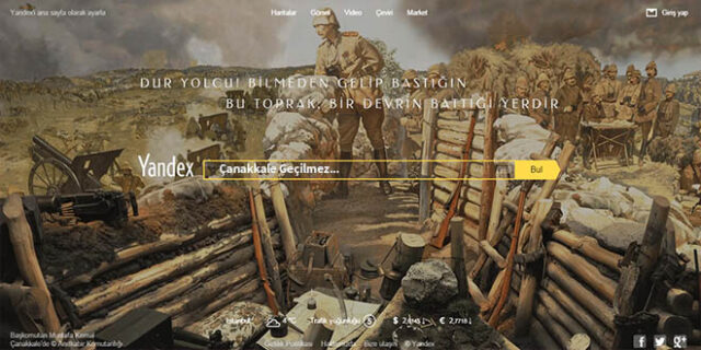 Yandex, 18 Mart Şehitleri Anma Günü ve Çanakkale Deniz Zaferi’ni ana sayfasına taşıyarak, arama motorunu ziyaret eden kullanıcılarını bu büyük savaştan ve tarihi zaferden enstantanelerle karşılıyor.